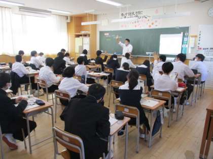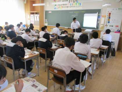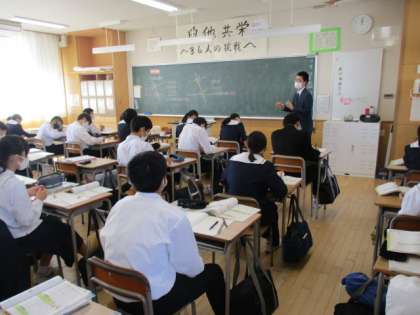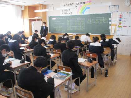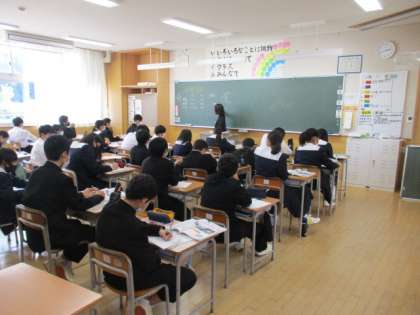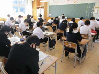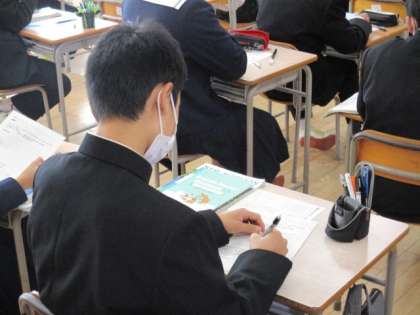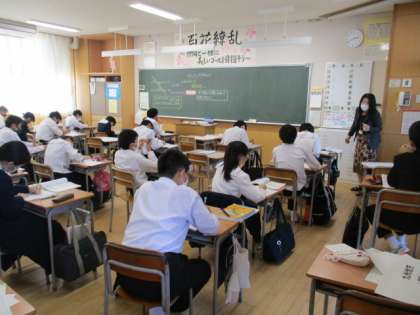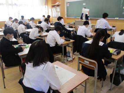 数学の学習をしています。1年生は「比例」、3年生は「三角形の相似条件」に取り組んでいます。