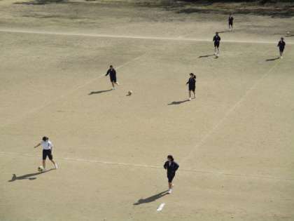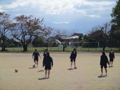サッカーボールをうまく操ることができるように、パスの練習を入念に行っています。 -