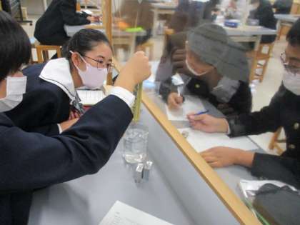 水に入れたときに物の重さがどう変わるかを、実験で確かめています。 -