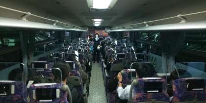 3年生が城山中学校に帰ってきました。どの顔も充実感でいっぱいです。「たのしかったー」「またいきたい」などの声が聞こえてきます。すてきな思い出がたくさんできたようです。