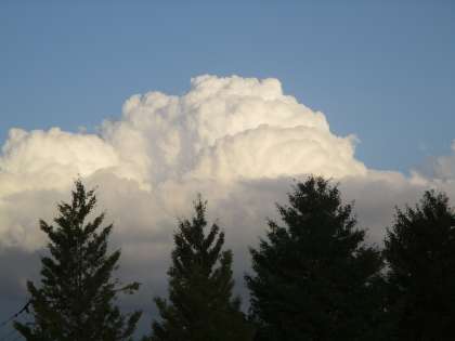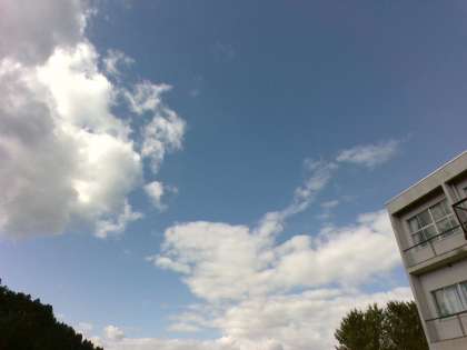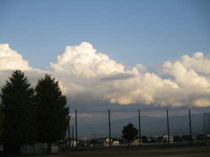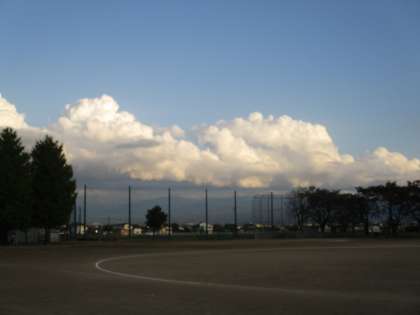 放課後16時半頃のグラウンドから見えた雲です。夏の入道雲のような、いわゆる「二三雲」のような・・・空の青さと相まって、美しい風景となりました。