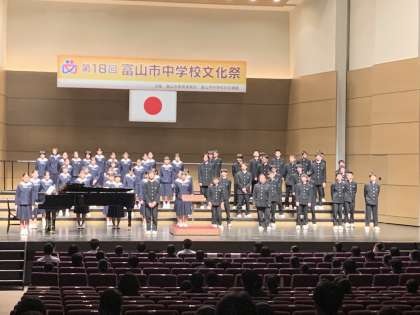 第18回富山市中学校文化祭がオーバードホールで開催され、3年の学年合唱を発表しました。