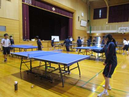 卓球部の様子です。技術を向上させようと真剣に取り組んでいました。