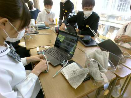 3年生は「地域の魅力を伝える」で商工会さんの協力を得て、婦中町に実在するお店の商品パッケージやロゴマークをデザインしています!3年1組は、アイディアスケッチをしています!