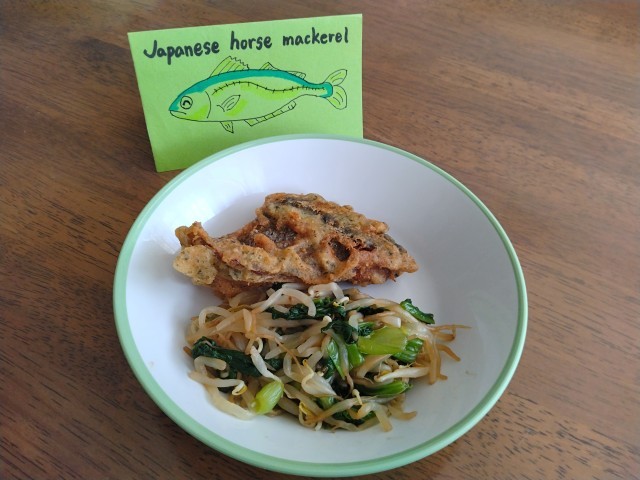 【本日の献立】 あじのえごま揚げ チンゲンサイひたし おでん ごはん 牛乳