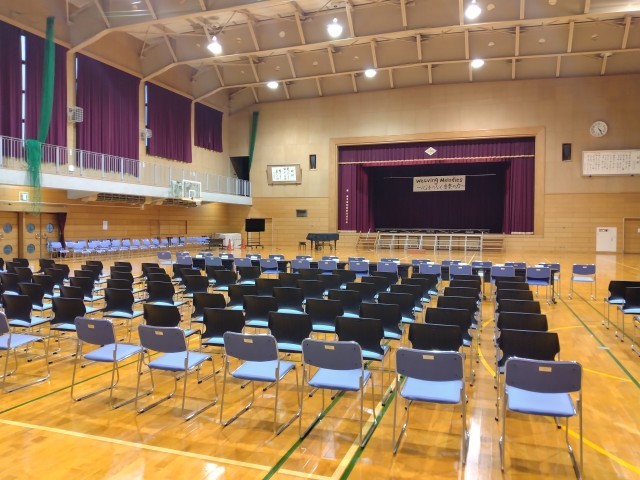 2年生が体育館の準備をしてくれました。てきぱきと動き、あっという間に整いました。