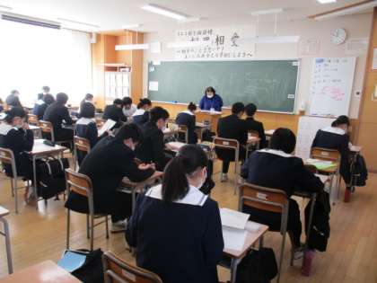 3年生の進路懇談会は2日目を迎えています。担任と親子で、進路選択の方向性についてじっくりと話し合っています。