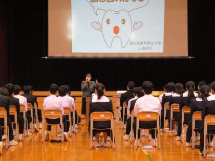 1年生は5限に、歯科衛生士の山田さんによる歯の健康講座に参加しました。