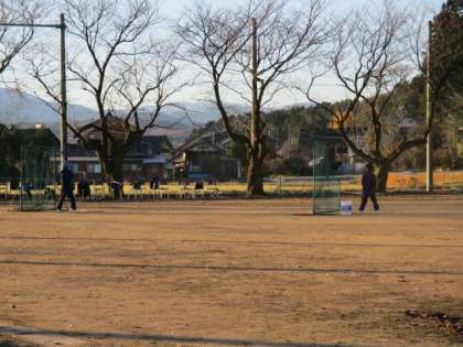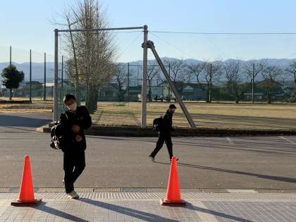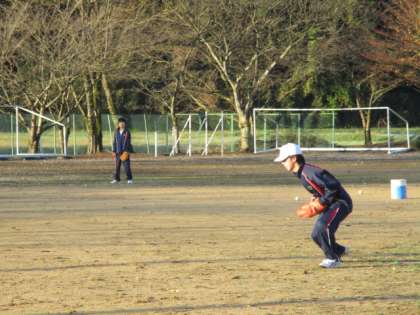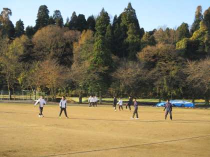 野球部もがんばっています。朝の光を浴びて気持ちよさそうです。 -