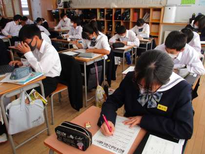 今週は進路懇談会があるからか、3年生の表情がどことなく緊張しているようにも感じました。でも、みんな真剣に学習に取り組んでいます。