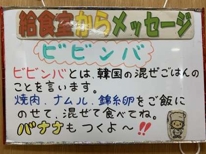 今日の給食はビビンバです。
