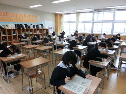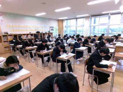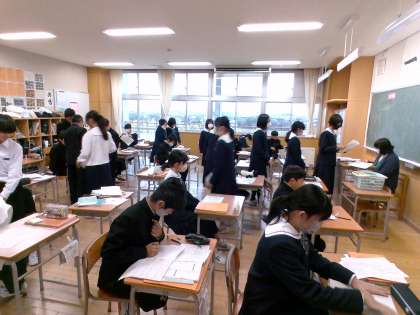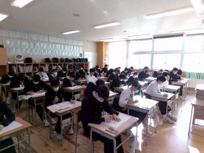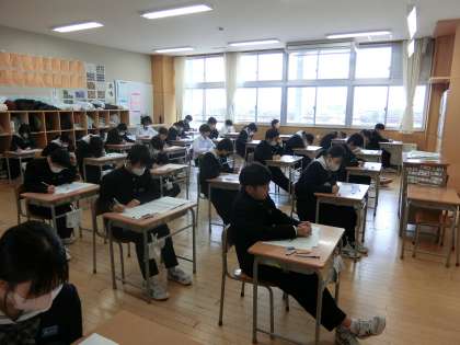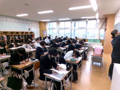 3年生は、期末考査が終わりましたが、明日から富山市中学校学力調査が実施されます。もう一息、力を出し切りましょう。 -