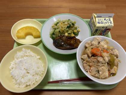 カレー風味のポークパコラは間違いありませんが、今日の一番はかぶでした。かぶの甘みが生かされたスープでした。 -