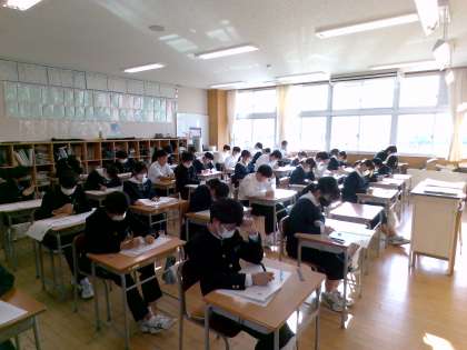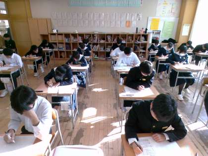 今日から市学力調査が始まりました。3年生は、テスト続きで大変ですが、頑張って下さい。