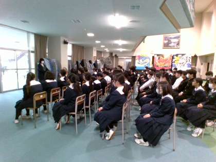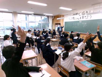 5限目に「プロに学ぶ歯と口の健康講座」が行われました。学校歯科医の釣谷先生から中学生の歯と口の健康について予防などお話がありました。健康委員が司会やあいさつを行いました。