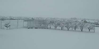 先日からの降り続いている雪で、グラウンドはすっかり白くなってしまいました。