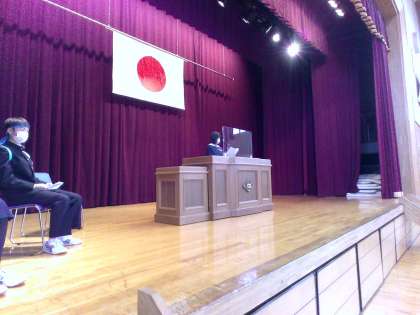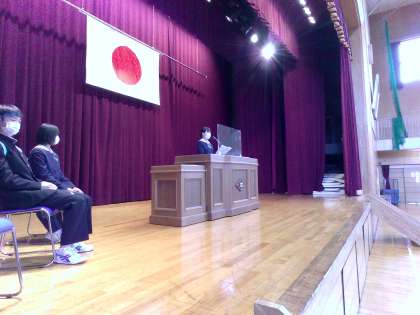 2学期を振り返り、各学年の代表者から意見発表が行われました。3名とも立派な発表でした。