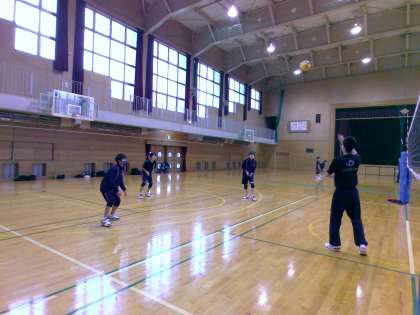 12月25日(土)男子バレーボール部が部活動を行いました。今日は高校生の先輩が来て、部員に指導してくれています。1月の大会に向けて、貴重な練習時間になりました。