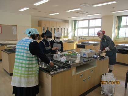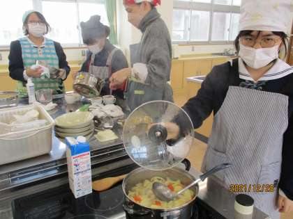 今年最後の家庭部の部活動は、調理実習でした。クリームシチューを作っていました。家庭科室はとてもいいにおいでいっぱいでした。