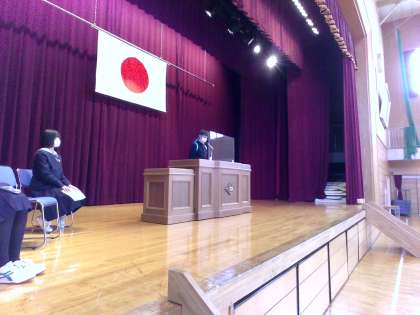 皆さんが、春に夢を叶えるというすてきな花を咲かせるために、明日からも、自分に限界をつくらず、「学力」と「心の豊かさ」と「体力」を身に付けるための努力を、黙々と、継続して、そして、ものすごい勢いで重ね、そして、新年を迎えるにあたって夢や目標を新たにもち、春の準備に取り組んでいくことを期待して、式辞とします。