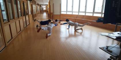 本日は今年最後の部活動でした。雪も小やみになり、寒さを吹き飛ばす元気良さで活動していました。野球部員は、最初の一時間は学習に励み、頭も体も鍛えた部活動でした。
