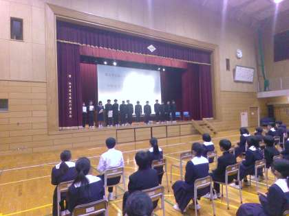 代表生徒が2学期を振り返り、意見発表を行いました。
