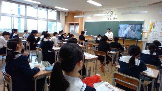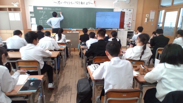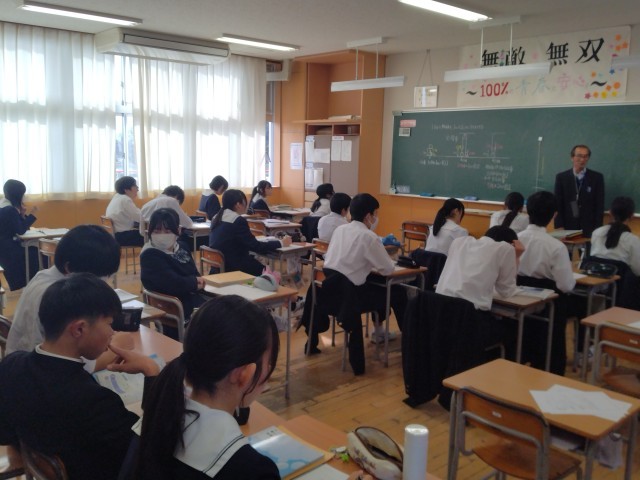 生徒は、給食後12:40を目途に下校を開始します。午後からは、市内の多くの教育関係者が来校しますので、学校周辺の往来にご留意ください。