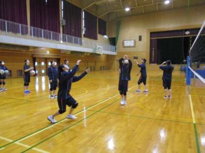 卒業生も参加し、サーブやスパイク等、丁寧に練習をしていました。