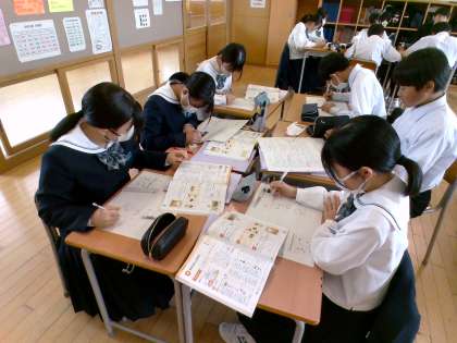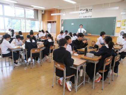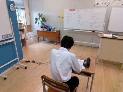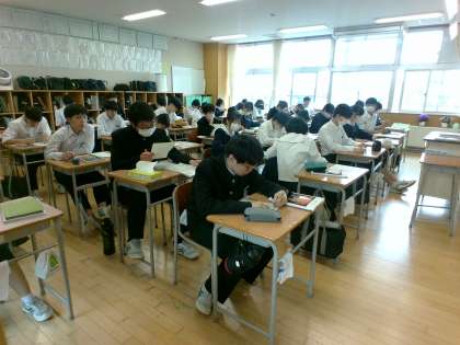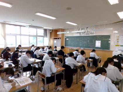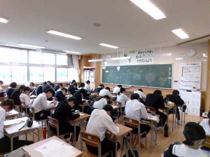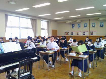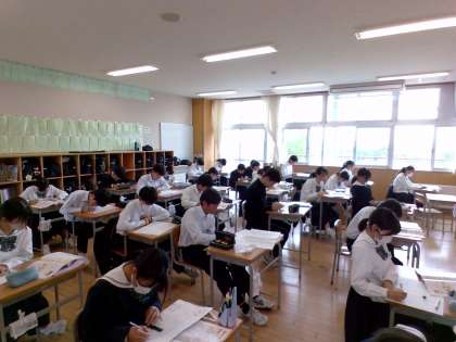 1組は技術で電気回路について、説明を聞いていました。2組は英語で未来を表す英文について、学習しています。3組は音楽です。発声の仕方について、学びました。