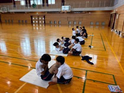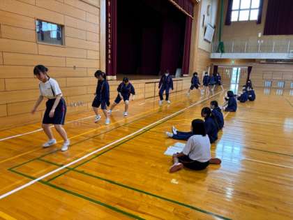 スポーツテストの上体起こしと反復横跳びの2種目を実施しました。みんな、がんばっていました。 -