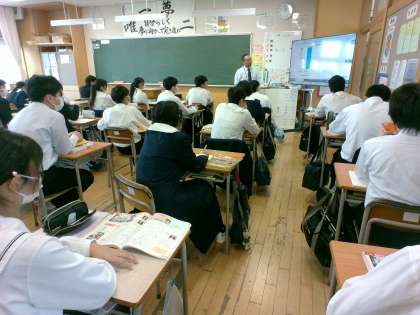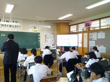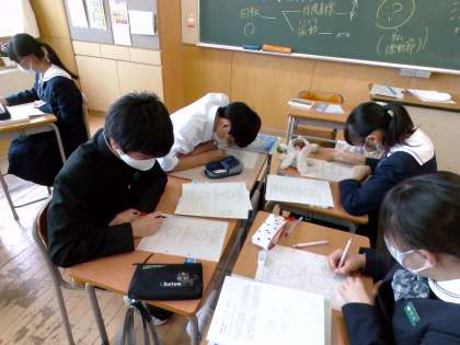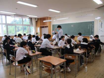 5時間目の授業は、1組が社会、2組が理科でした。給食のあとでもあり、みなエネルギーが漲っていますね。