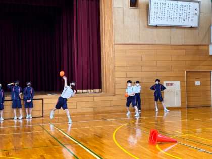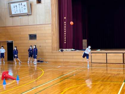ハンドボール投げを行いました。30mを超える記録は出ましたが、満点は出ませんでした。