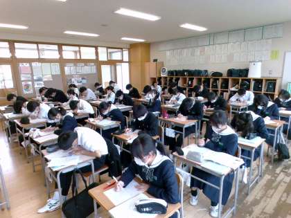 2組数学の様子です。2年生は式の計算の分野が終わりました。次回から文字式の利用に入ります。集中して取り組んでいます。