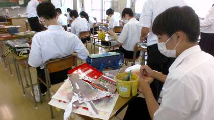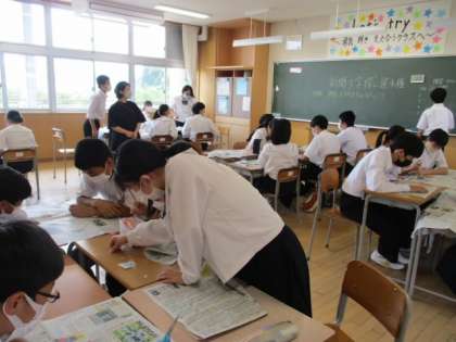 班での交流を深めるために「新聞文字探し選手権」を行いました。完成までの時間を競い合いながら楽しく活動していました。