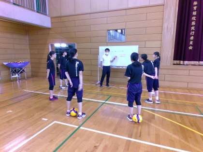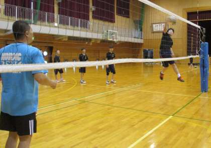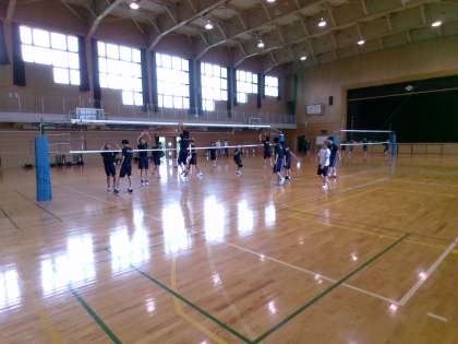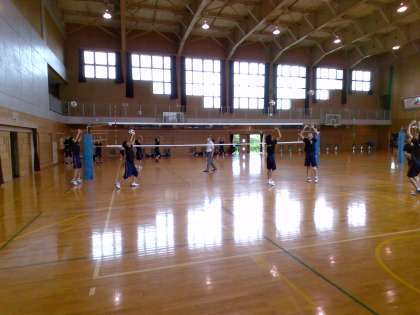 午前後半の体育館は、男女バレーボール部が元気に活動していました。