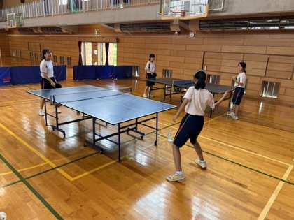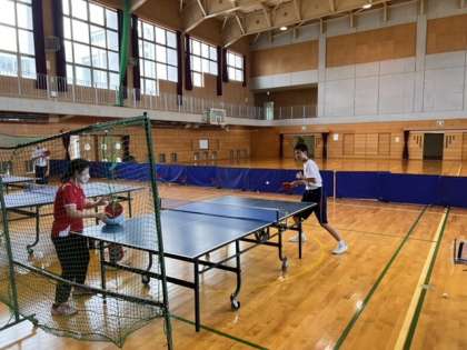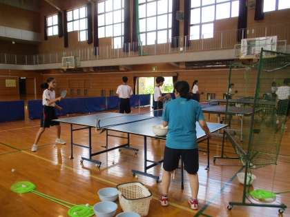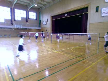 体育館の午前の活動は男女バドミントン部でした。基礎打ちや試合形式の練習を行っていました。