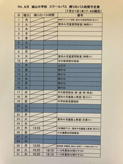 ※3年生登校日である8月25日(木)は、朝の便も通常通りの時間に運行します。 -