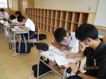 夏休みの団活動は今日で前半戦が終了しました。後半戦は8月22日(月)から始まります。後半戦からは2学年リーダーも練習に加わります。3学年リーダーが練習メニューを考えて待っています!