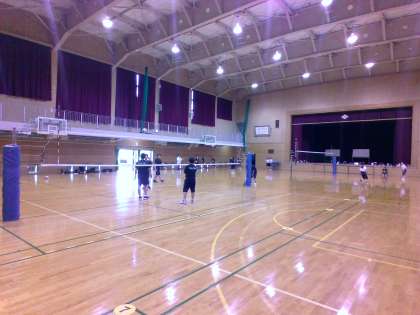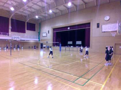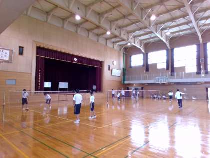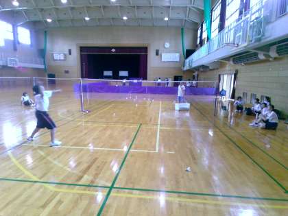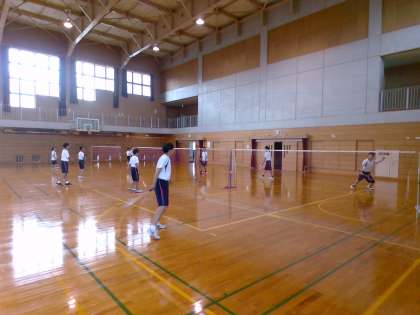 男子バドミントン部の様子です。夏休みは、みんなコートに入って打てるので楽しそうです。