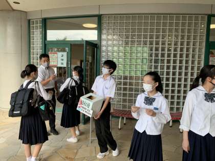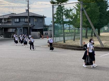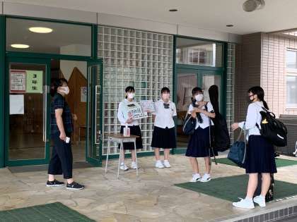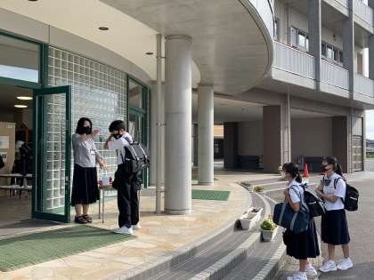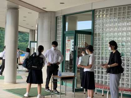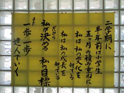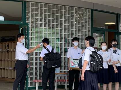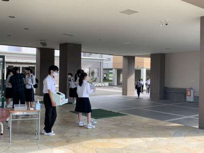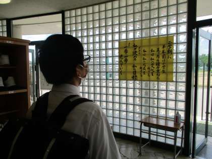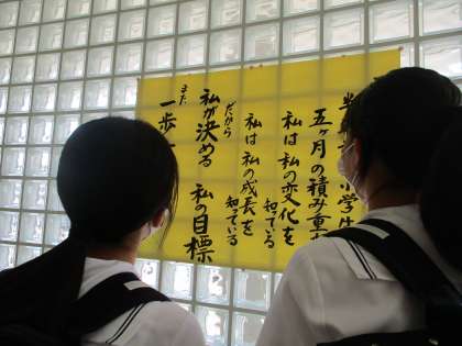 2学期が無事にスタートできました。下校の際に玄関でたくさんの生徒が、池淵校長からのメッセージの前で足を止めていました。じっと見つめて読んでいる姿が素敵でした。