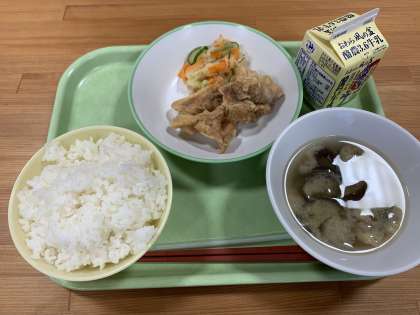 久しぶりの給食でした。米粉揚げは、外はサクッと中はジューシー。