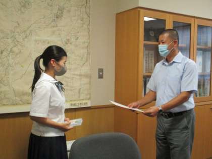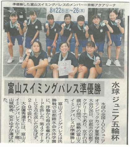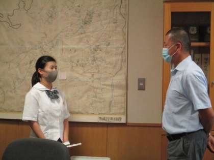 水球の全国JOCジュニアオリンピックカップ夏季競技大会で「富山スイミングパレス」のメンバーとして出場した生徒が、池淵校長先生に準優勝の結果を報告しました。