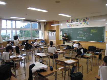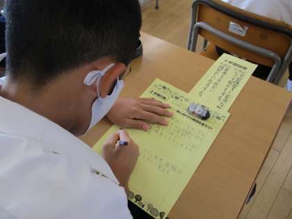 1年生では、1学期の自分を振り返り、「2学期の目標」と「2学期の私」を書きました。生徒の丁寧な文字から、頑張ろうという思いが感じ取れました。