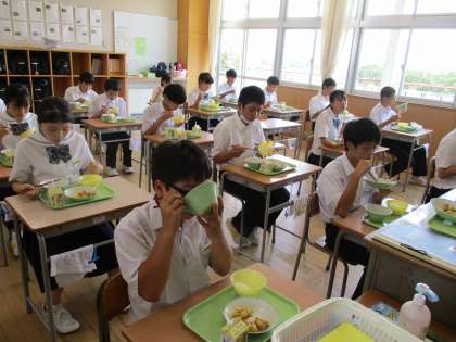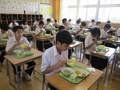 久しぶりの給食です。黙食を守って、味わって食べています。