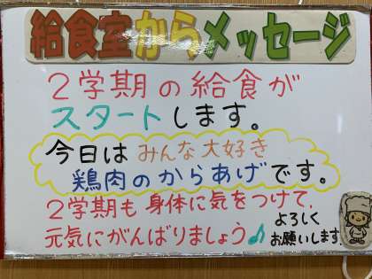 お久しぶりです。今日からまた「今日の美味しい給食」が始まります。