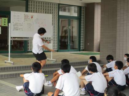 夏休み中、暑さに負けず部活動や駅伝の練習に燃えていた人、夏休み、小学生に勉強を教えた人、高校のオープンハイスクールに参加し、進路や将来の職業を考えた人、体育大会の応援練習やパネルづくりに取り組んでいた人、その活動を支えていた実行委員など、多くの頑張っている姿がありました。夏休みの最後は活動できませんでしたが、充実した36日間でしたね。