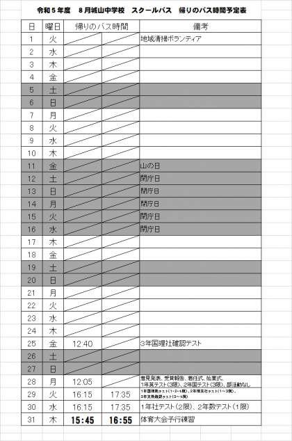 なお、8月31日(木)の部活動は中止とします。(朝練習も含む)