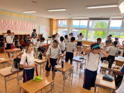 8月31日(木)の予行練習は、クーリングタイムを設けての実施となります。熱中症対策として、クーラーバック等を利用し、多めの水分、保冷剤等を持参しましょう。