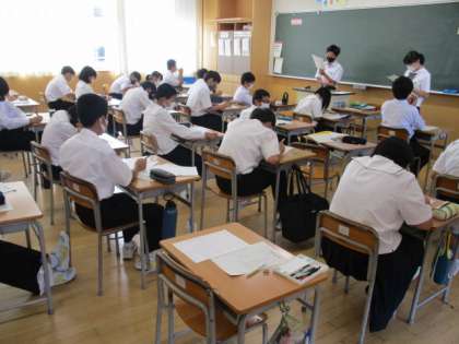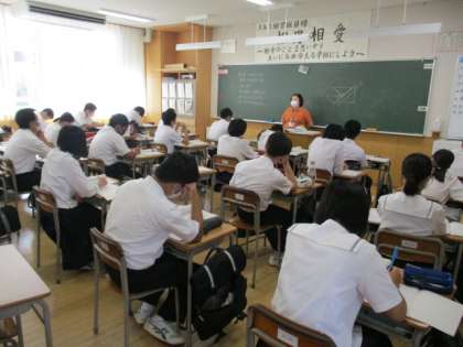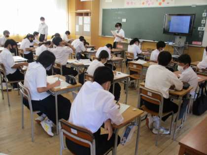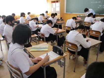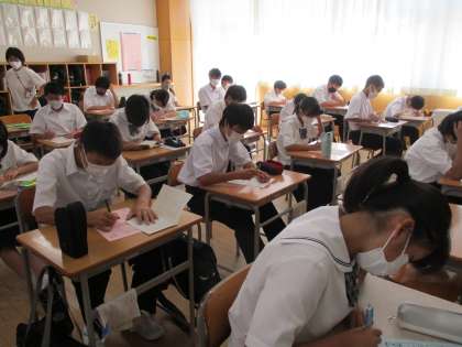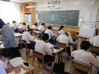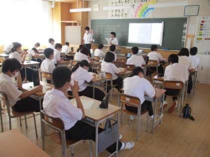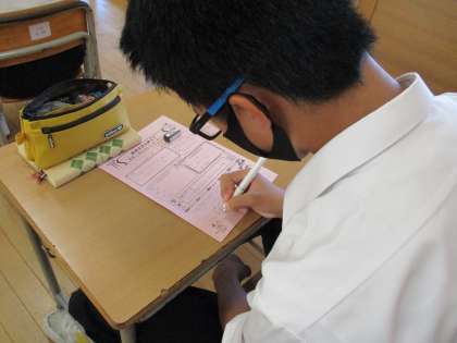 1年生では、城中タイムに昨日の体育大会の振り返りを行いました。体育大会での自分の頑張りを認めたり、友達のよさを見つけたりすることができました。