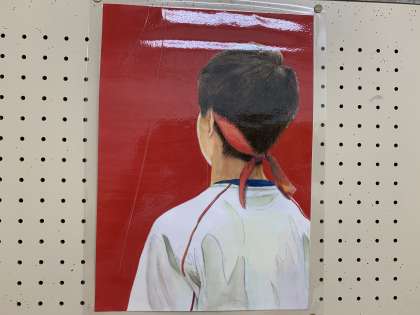 体育大会ポスターの優秀作品が玄関ロビーに展示されています。